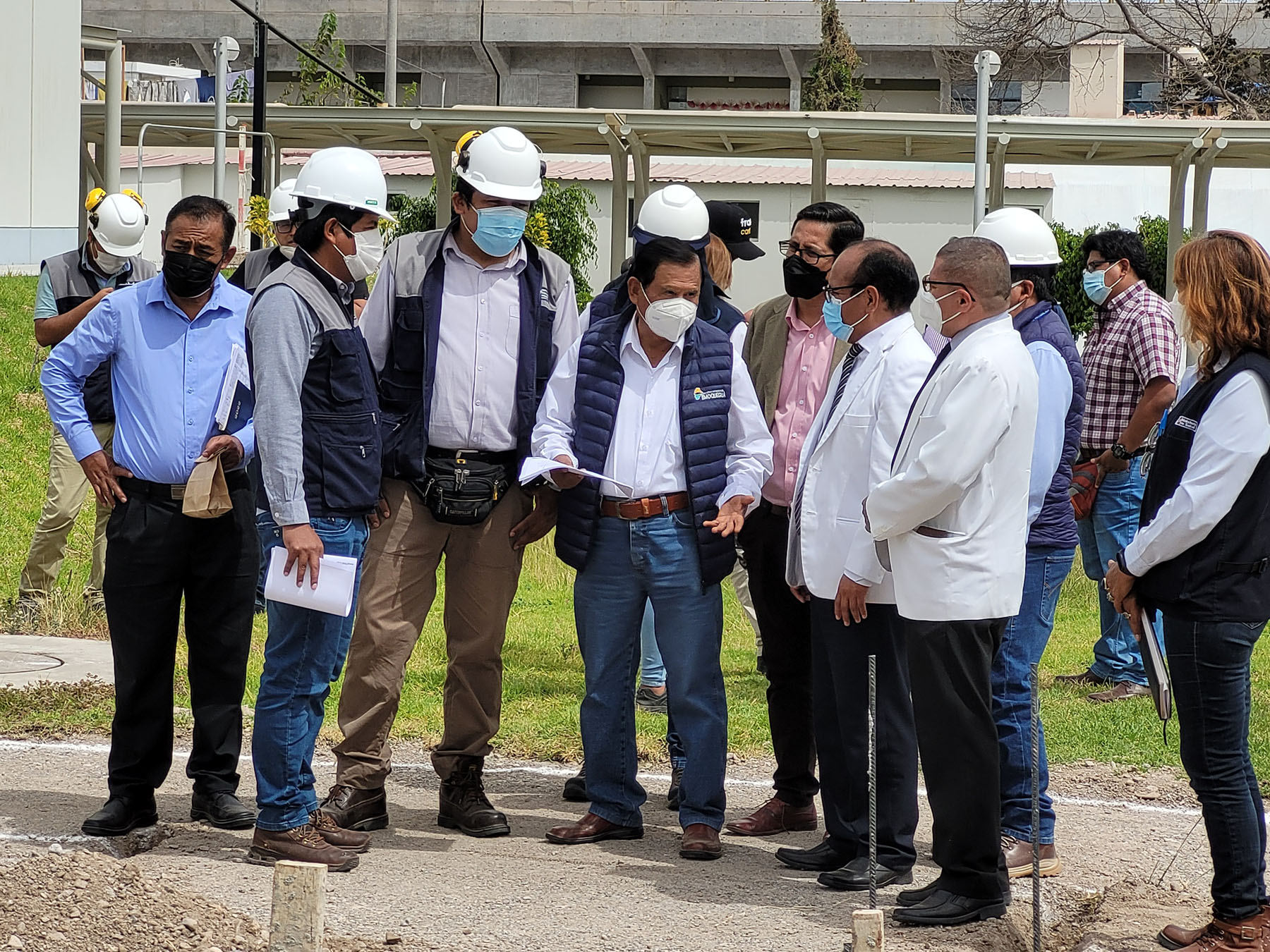 La supervisión se realizó luego de la ceremonia de inicio de obra de la planta de oxígeno del Hospital Regional de Moquegua. El director regional de Salud, Percy Huancapaza Chambi, y funcionarios del Gobierno Regional de Moquegua también participaron del recorrido.