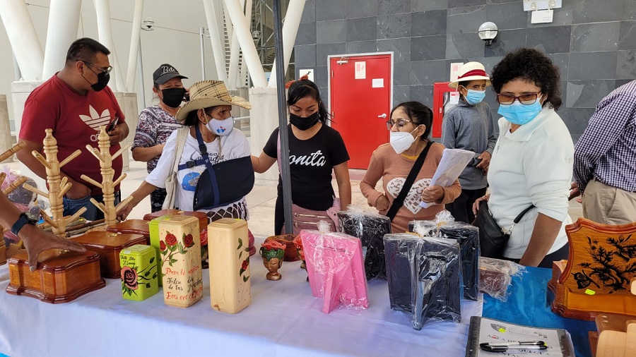 El INPE instaló una carpa cerca al área de estacionamiento, donde los trabajadores pudieron comprar diversos artículos a base de madera, tela, cuerina, entre otros.