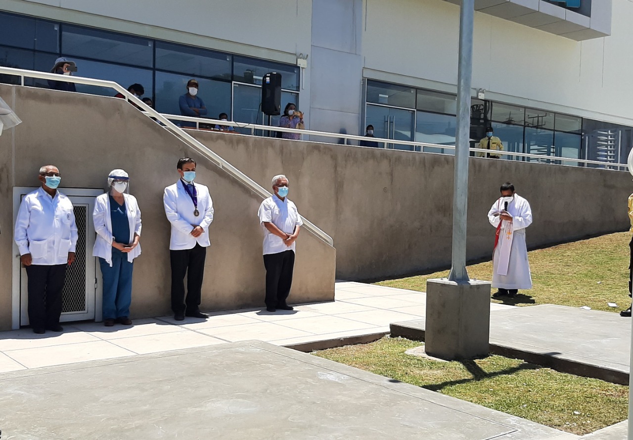 El Hospital Regional de Moquegua realizó el izamiento del pabellón nacional y la bandera de la ciudad en un breve acto protocolar, donde se guardó el distanciamiento social.