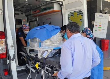 Por la complejidad de la patología que presenta una recién nacida en el Hospital Regional de Moquegua, ha sido traslada vía aérea al Instituto Nacional de Salud del Niño (INSN) Breña, para ser intervenida quirúrgicamente por ser portadora de un cuadro de cardiopatía congénita.